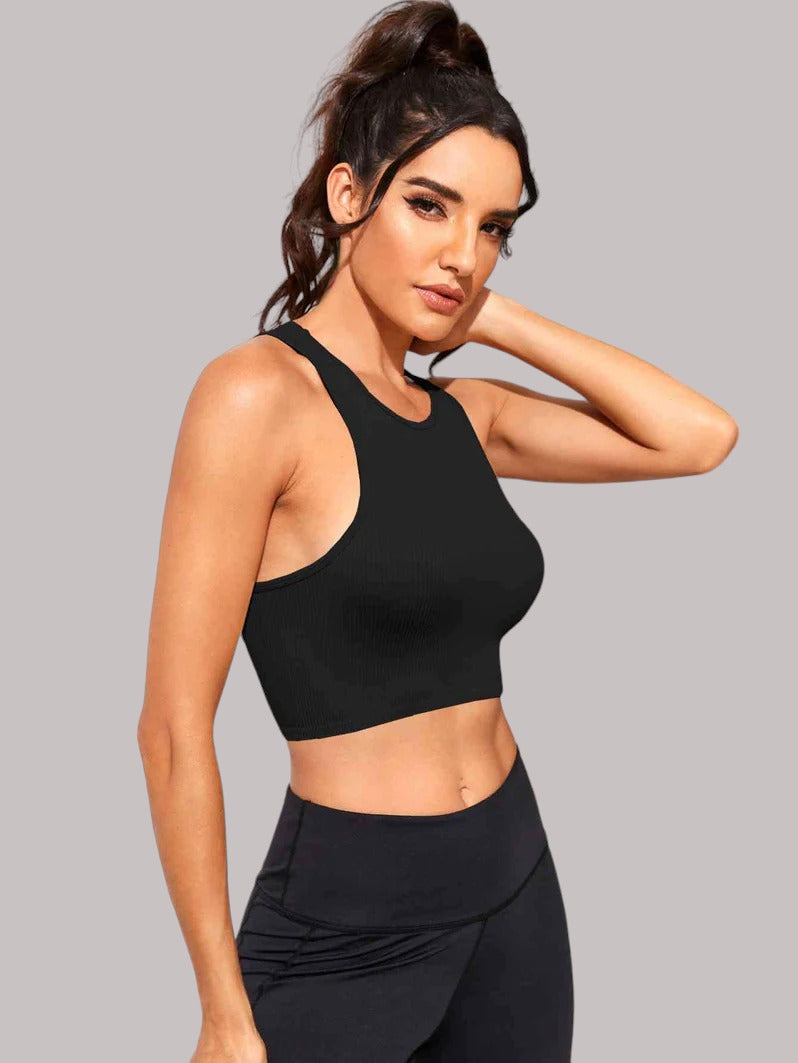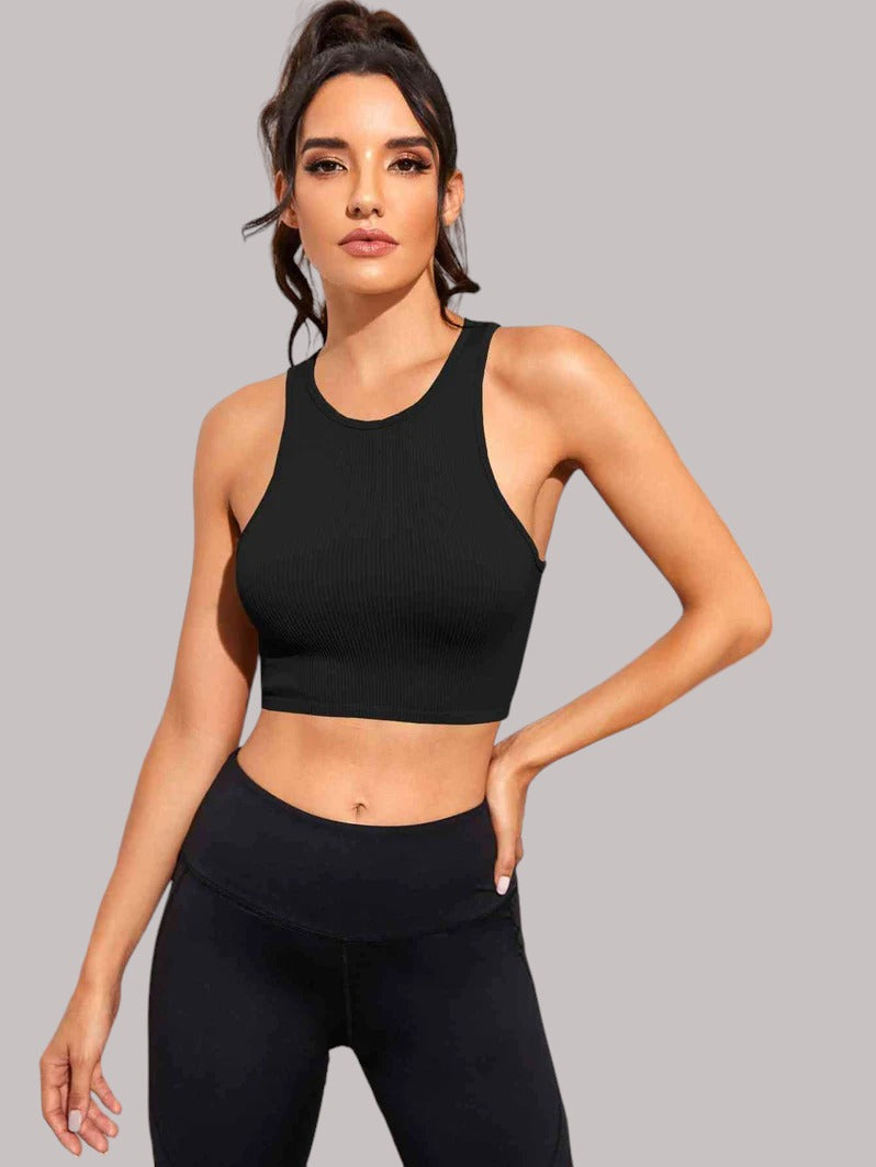 Cropped Round Neck Sports Tank Top