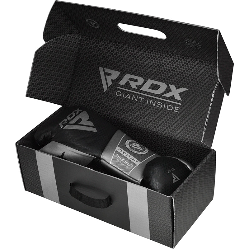 Unleash the dragon and burn every opponent down with the latest Mark Pro Boxing Gloves by RDX. Manufactured using premium Super Skin combat leather outside for extra resilience against wear and tear and Dazzle Fabric inside for breathability and comfort. These pro fight gloves features latest Tri-Korta 1 MOULD with Sponge X PADDING for ultimate resistance against high intensity force. Compressed EVA-LUTIONTM SHEET offers great flexibility and softness without adding extra weight. Anti-tear and waterproof properties of this sheet adds extra durability. Polygonal Fusion FOAM for impact-resistance and Max ShockTM Equilibrium Foam + Sponge X PADDING on cuffs to absorb the blunt of impact and distributes force equally across the gloves.